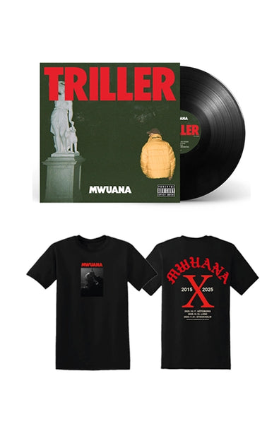 Special, limited offer on a signed copy of Mwuana "TRILLER" x2 LP and the "X Tour" Tee